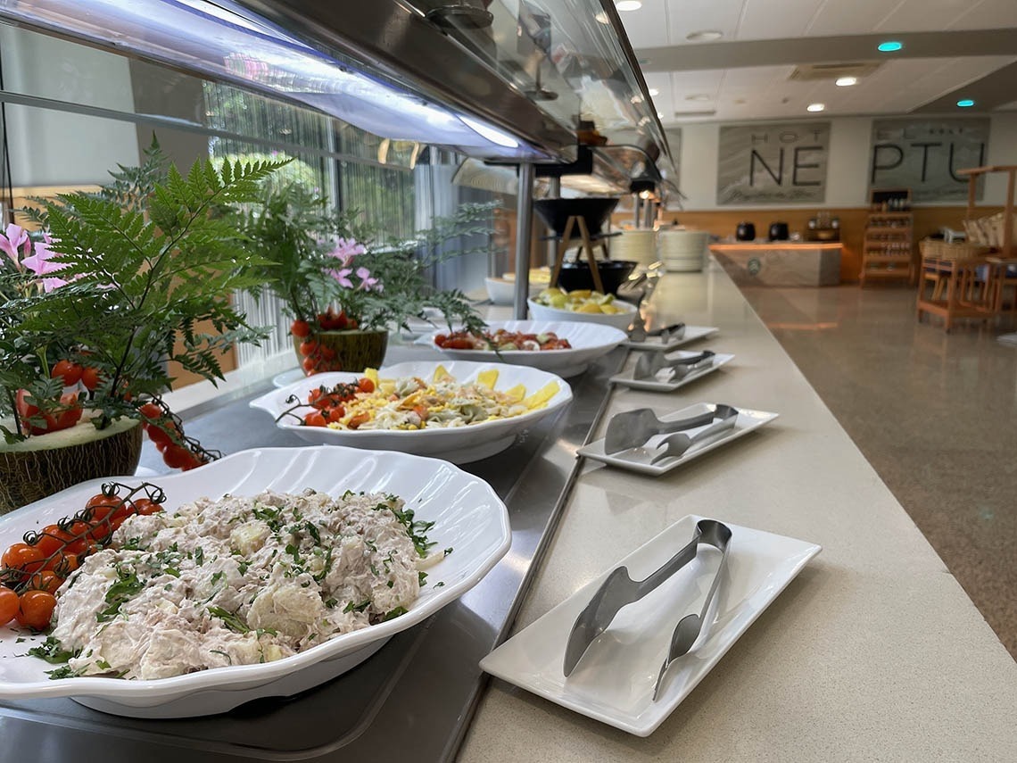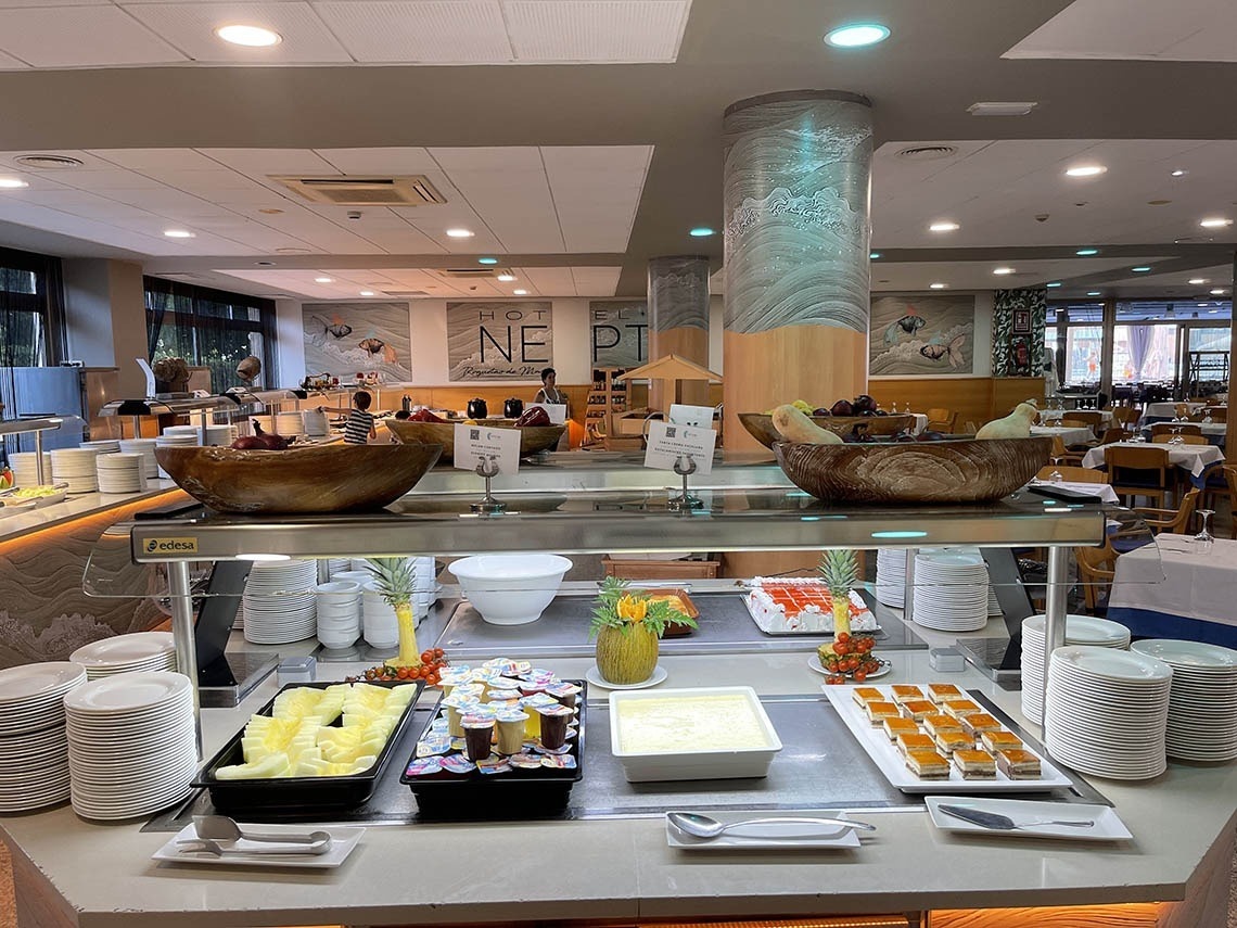 BUFFET L'Hôtel Neptuno propose un service de restauration sous forme de buffet, d'une capacité de 480 personnes, avec cuisine en direct, menus thématiques et une grande variété de desserts, glaces et crêpes (en été).
