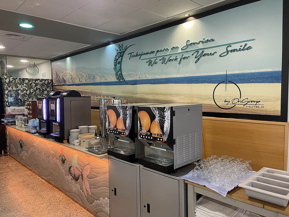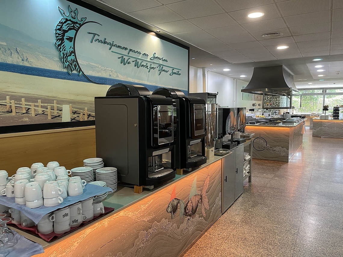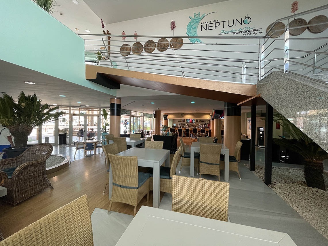 Dans la cafétéria Neptuno, nous vous proposons une atmosphère détendue où vous pourrez profiter de notre vaste carte de boissons, de collations et d'un large assortiment de tapas. Le service cafétéria sert également sur la terrasse de la piscine.